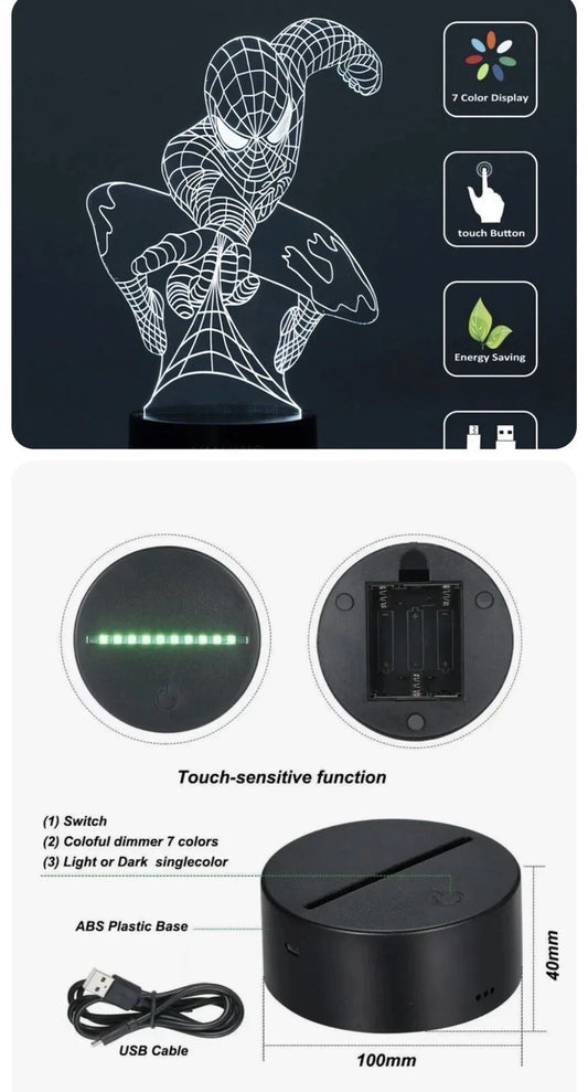 Brand New 3D LED Spiderman Bedroom Room Lamp 7 Colors Desk Lamp Touch