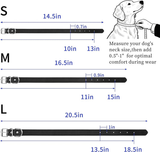 Black Leather Dog Collar for Medium Dog .75'' Wide x 16" Long