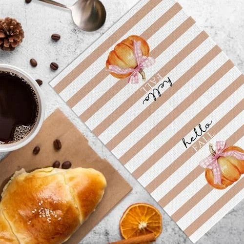 Fall Pumpkin Decor Kitchen Towels and Dishcloths Set of 2 Fall Dish Towels